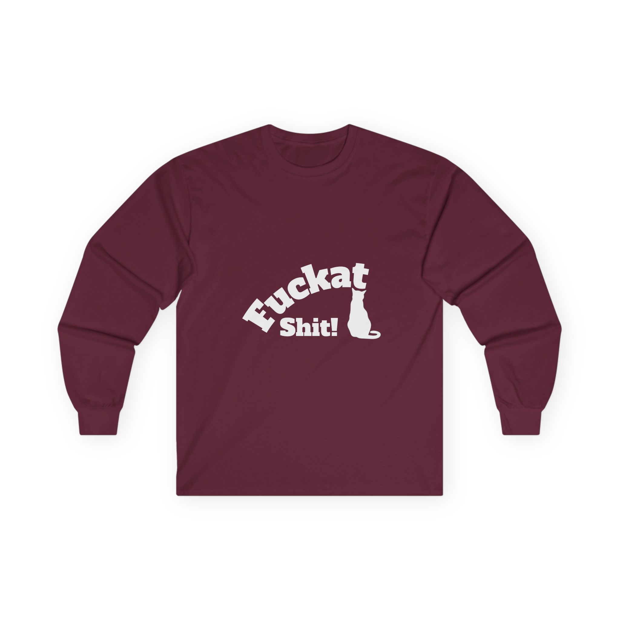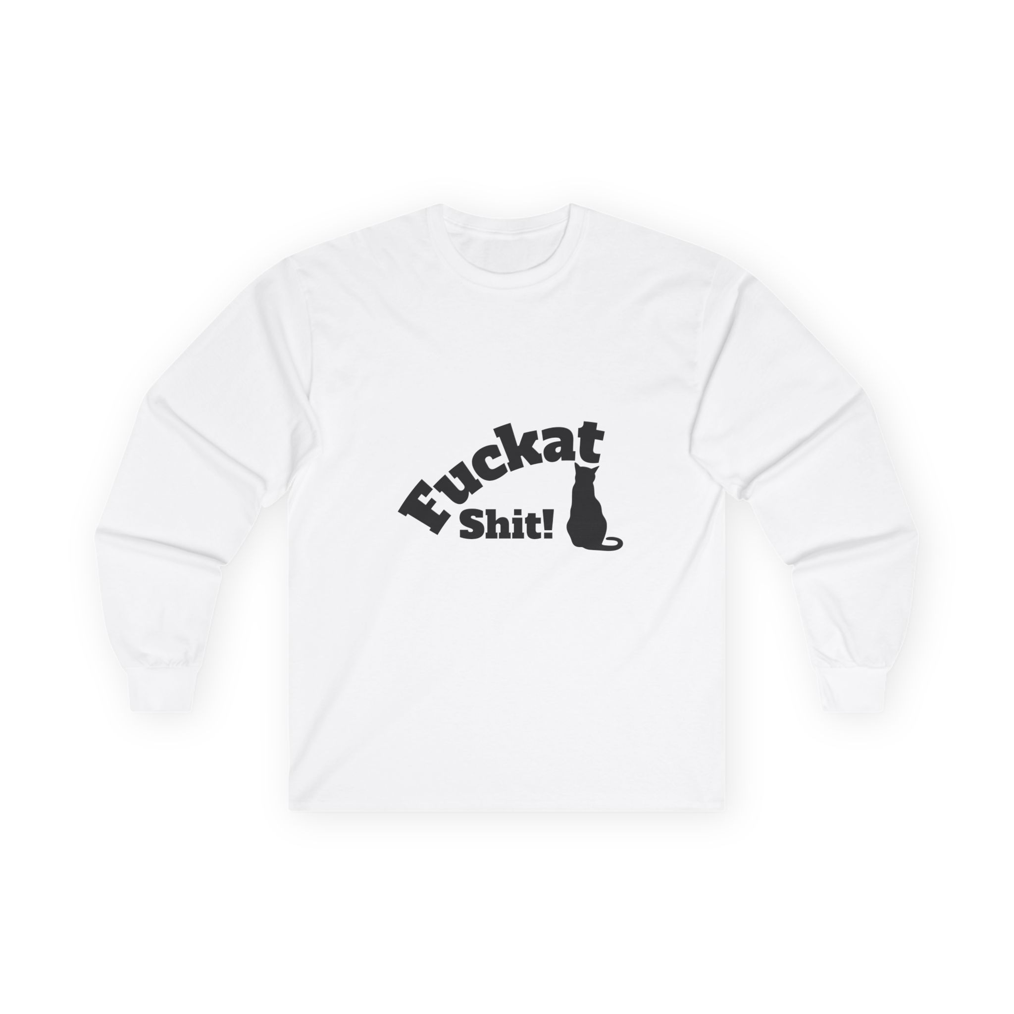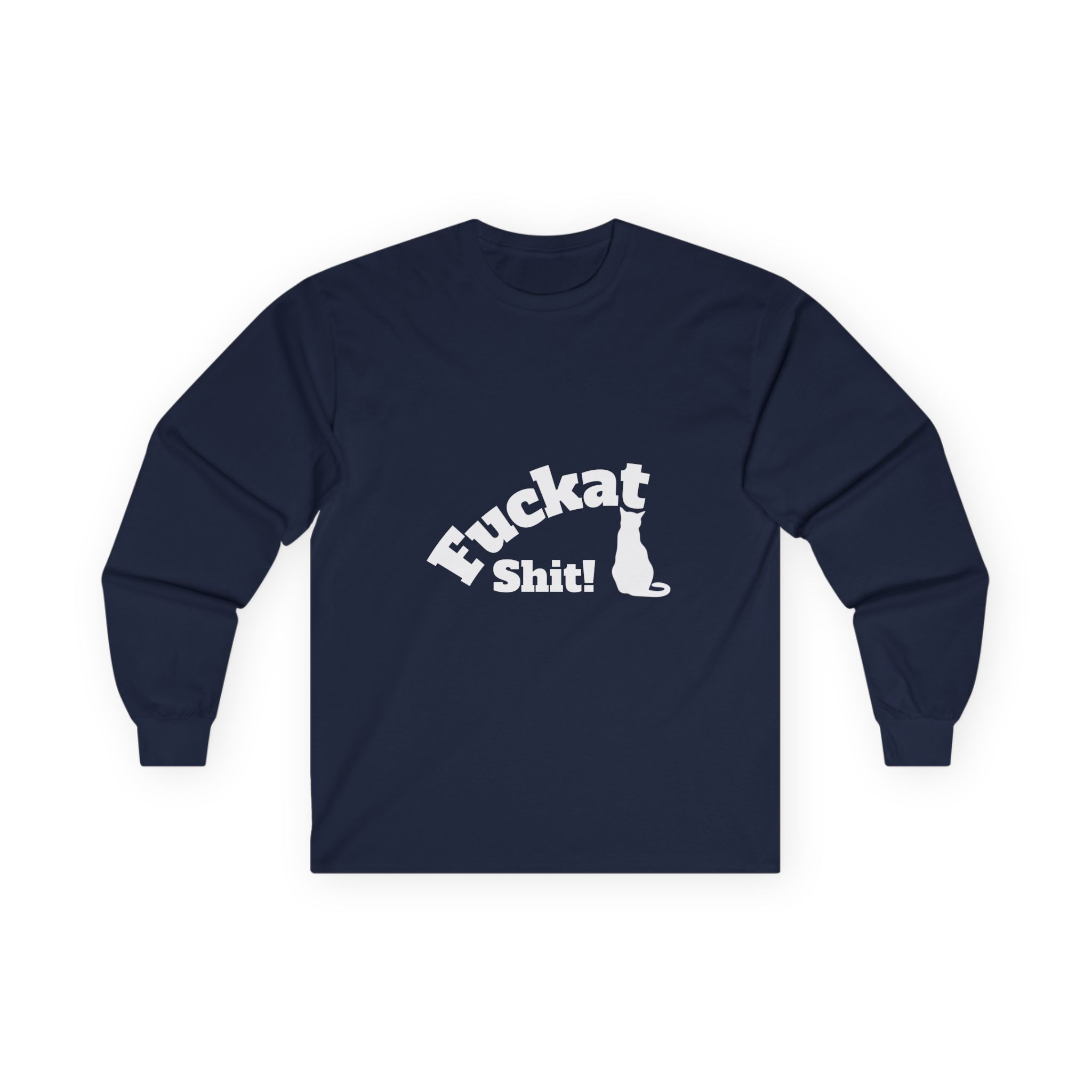 You know you say it a million times a day, so why not wear it?! This long-sleeve tee carries a dry, rebellious wink — a bold typographic design paired with a simple cat silhouette that reads like a private joke between kindred spirits. The medium-weight cotton has a vintage, broken-in hand that softens with every wash while the tubular knit and shoulder tape keep the shape honest. Wear it on slow mornings with coffee, on late-night walks, or layered under a jacket at a rowdy show. It sits like a familiar companion: comfortable, a little cheeky, and entirely unapologetic.