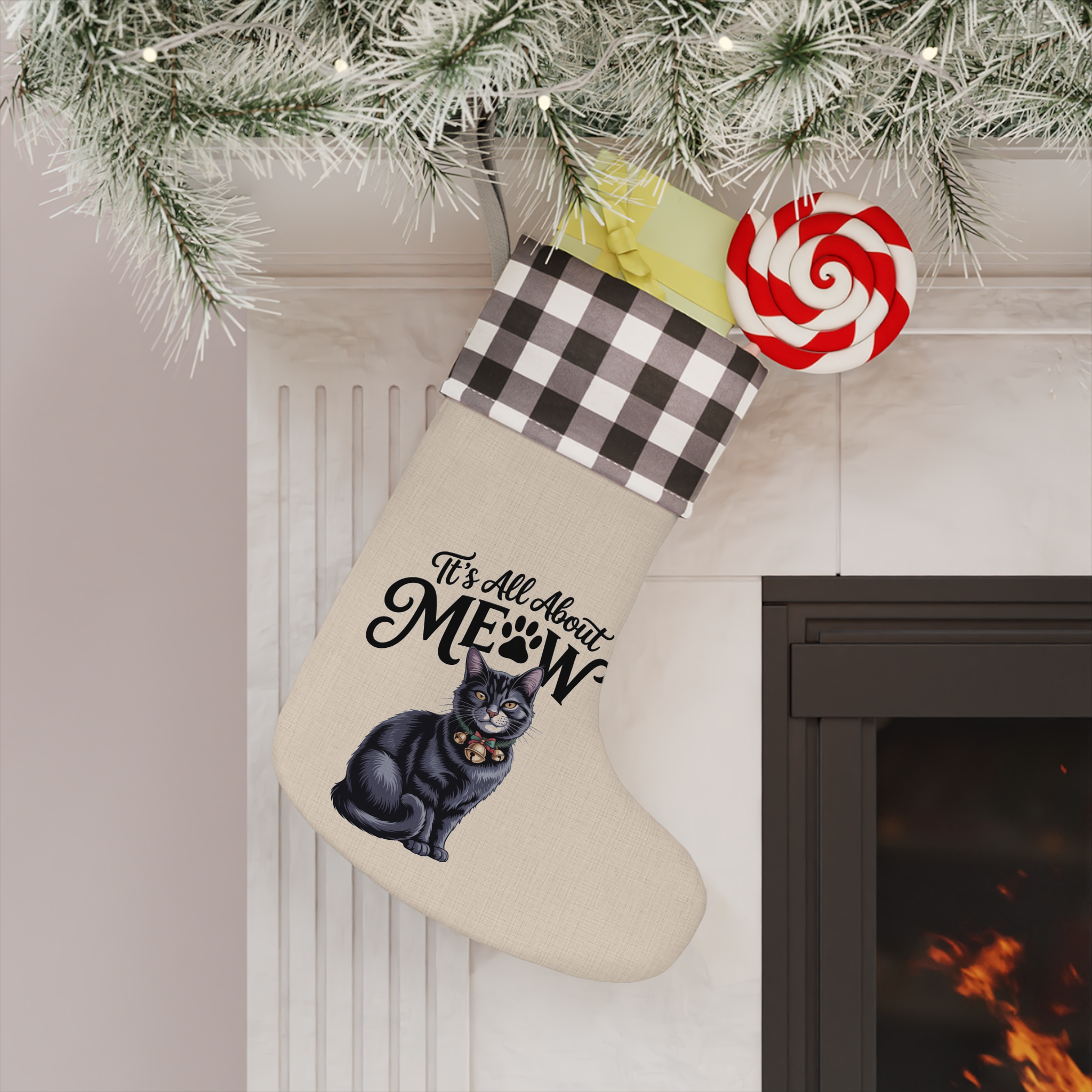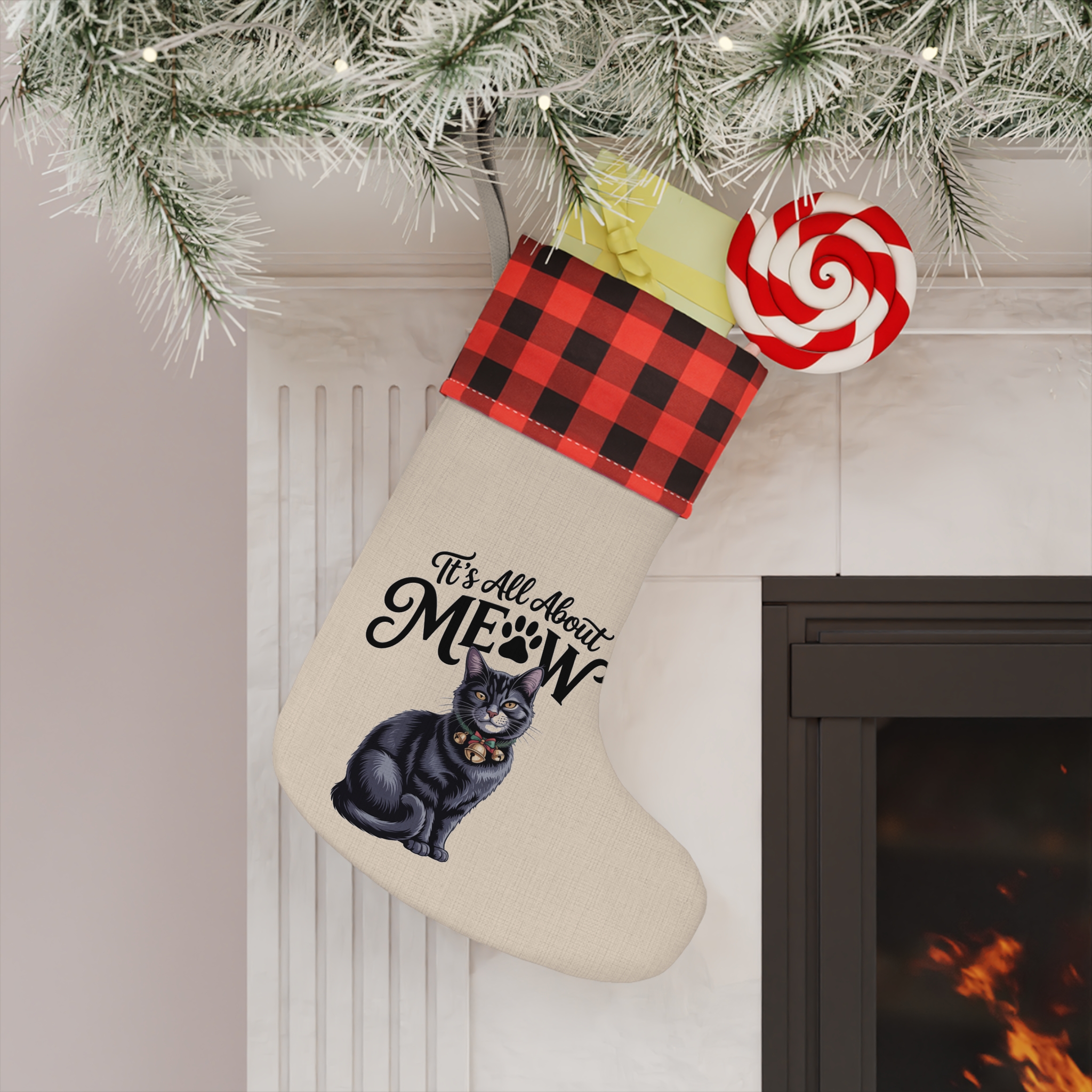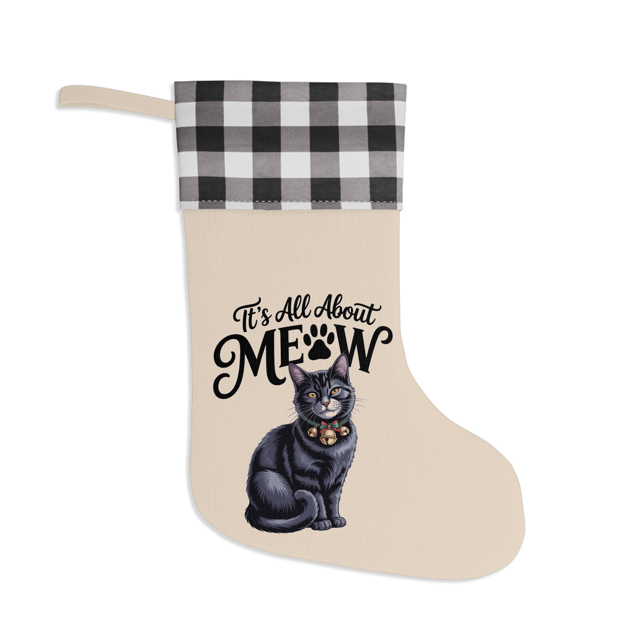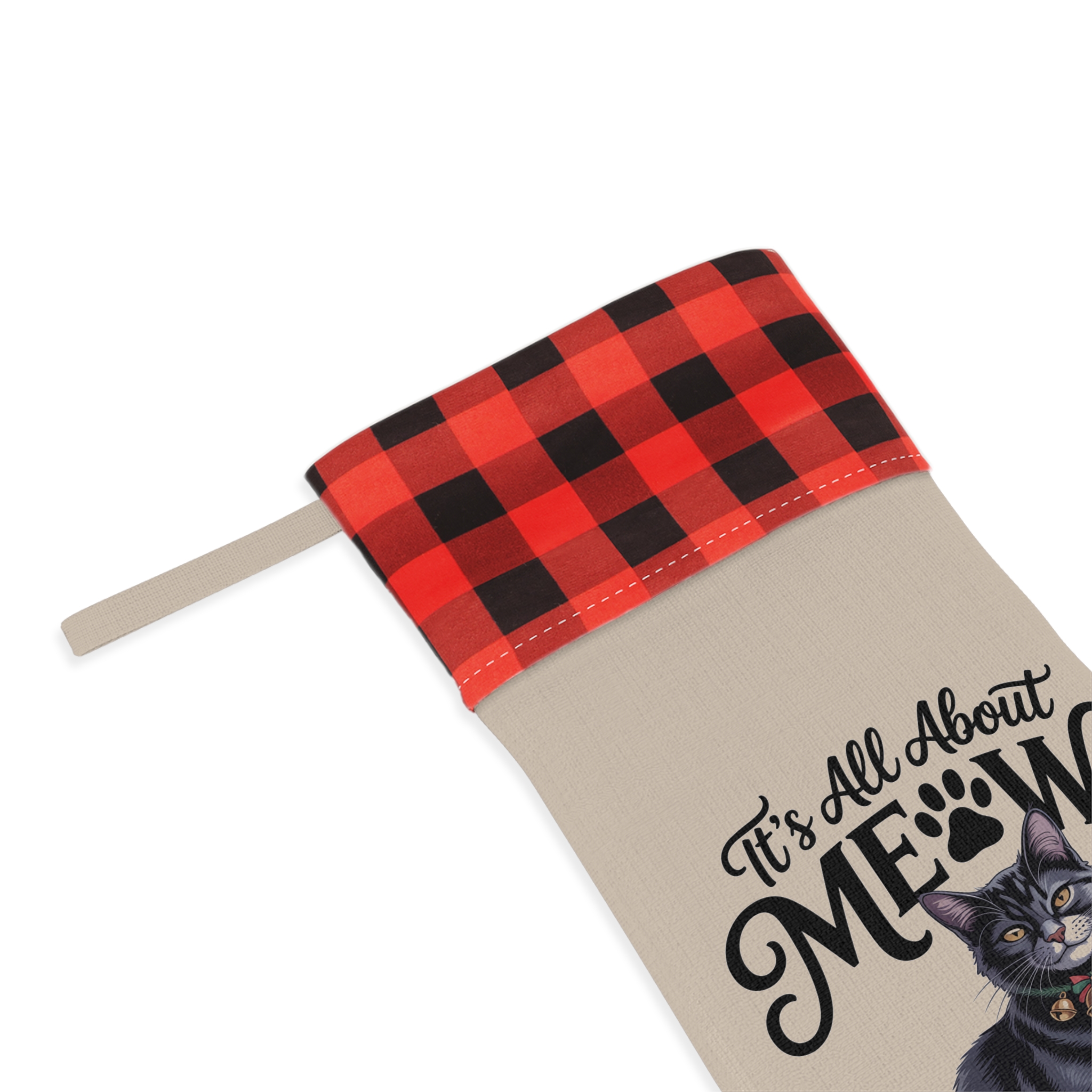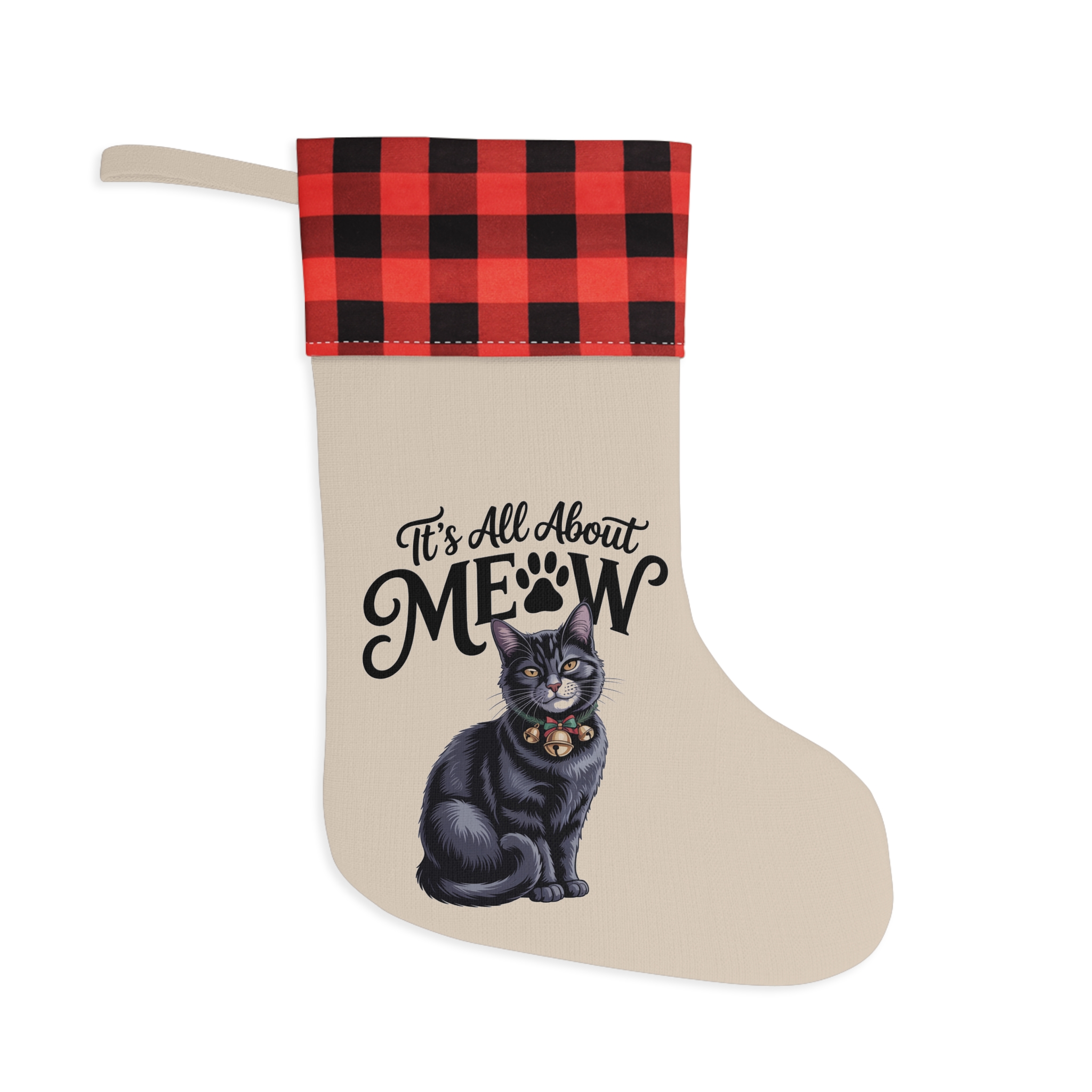 It’s All About Meow Cat Christmas Stocking – Plaid Cuff Holiday Pet Gift